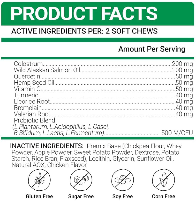 240 allergy & itch support chews with omega-3s, colostrum & probiotics. Helps comfort itchy skin, paw licking & hot spots. USA-made.